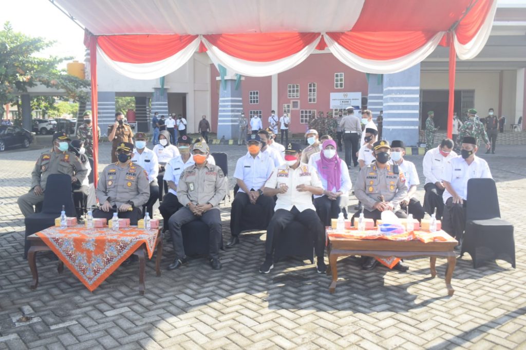 Forkopimda Pasuruan Raya melaksanakan Apel Gelar Pasukan dalam rangka percepatan perpindahan Isoman ke Isoter yang dilaksanakan di Halaman GOR Untung Suropati Kota Pasuruan.