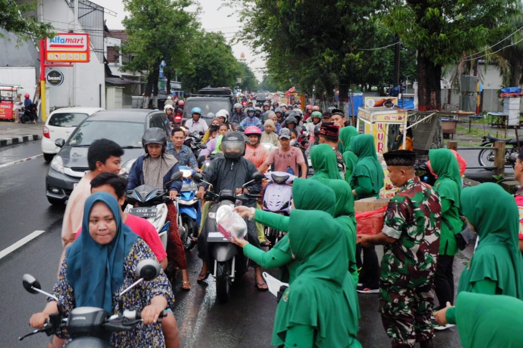 MOJOKERTO, RI- Dalam rangka meraih keberkahan bulan suci Ramadan, anggota Koramil 0815/01 Pralon Kodim 0815/Mojokerto bersama Persit Kartika Chandra Kirana (KCK) Ranting 02 Pralon menggelar aksi sosial dengan membagikan takjil kepada masyarakat pengguna jalan.