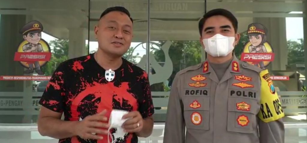 Tak mau ketinggalan mensosialisasikan hal tersebut, Kapolres Pasuruan AKBP. Rofiq Ripto Himawan, S.IK., menyampaikan pesan ini bareng Artis Ibu Kota, Bemby Putuanda.