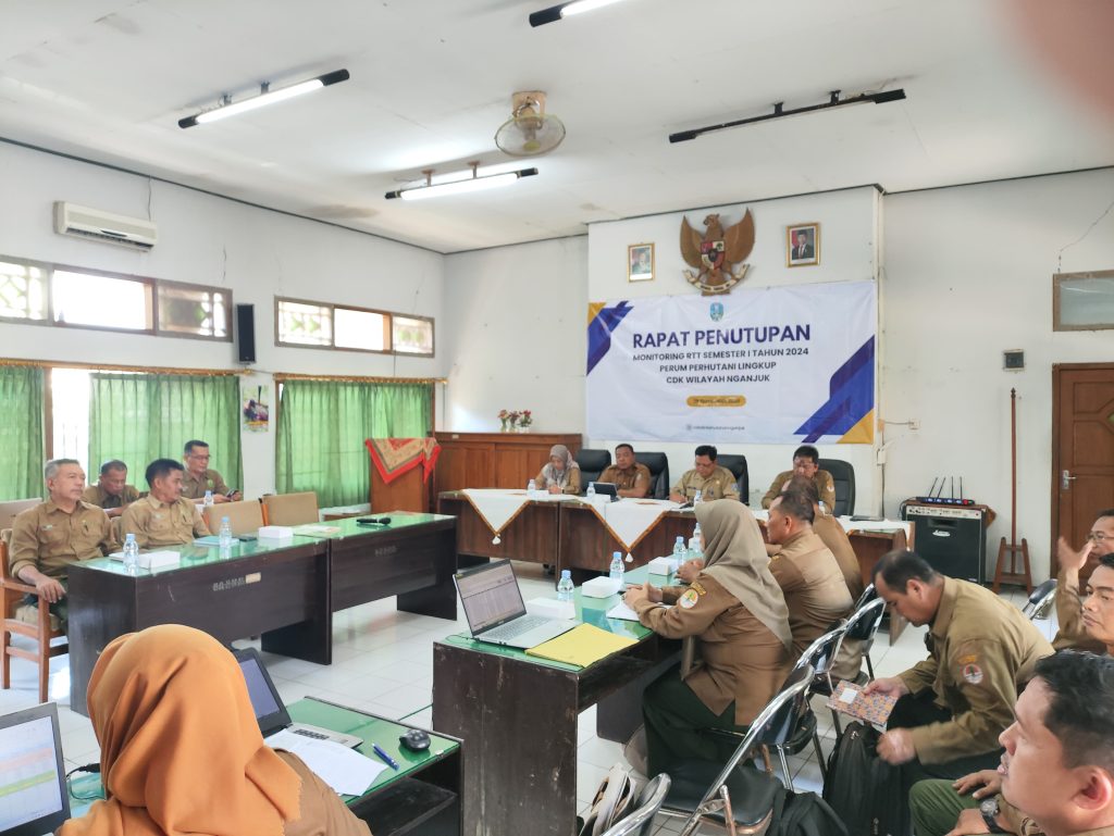 MOJOKERTO, RI. Perhutani Kesatuan Pemangkuan Hutan (KPH) Mojokerto menggelar closing meeting bersama Cabang Dinas Kehutanan (CDK) Wilayah Nganjuk untuk memonitor pelaksanaan Rencana Teknik Tahunan (RTT) Semester I tahun 2024, sebagai bagian dari evaluasi terhadap pengelolaan sumber daya hutan di wilayah KPH Mojokerto, acara ini dilaksanakan di Aula Kantor CDK Wilayah Kerja Nganjuk, Selasa (5/11/2024).