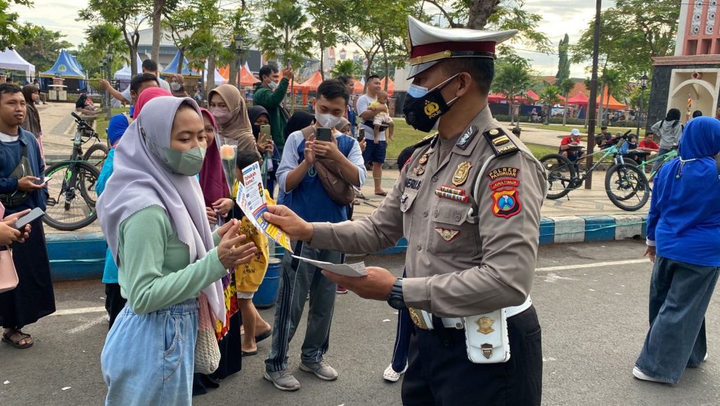 Bimbingan Dan Penyuluhan Tertib Berlalu Lintas, Satlantas Polres Pasuruan Kota Sasar Pengunjung Car Free Day