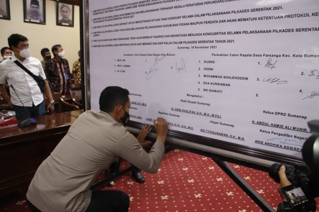 Deklarasi Damai sebagai tujuan Kondisifitas Kabuapten Sumenep sangatlah penting untuk para Calon Kepala Desa harus mampu menciptakan kondisifitas yang lebih baik.