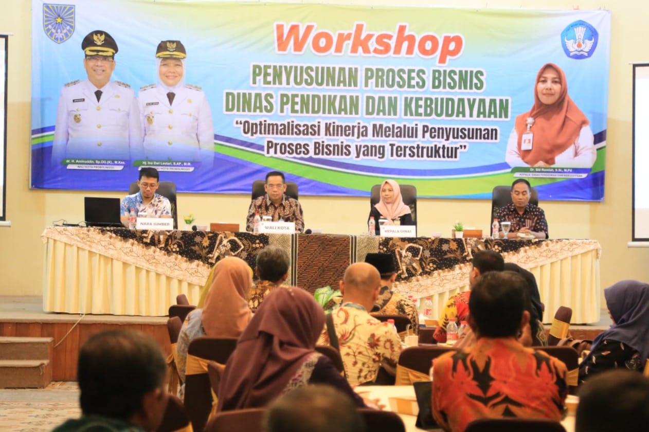 PROBOLINGGO,RI- Dinas Pendidikan dan Kebudayaan (Disdikbud) Kota Probolinggo menggelar Workshop Penyusunan Proses Bisnis tahun 2025, Kamis (2/10) di Bale Hinggil. Kegiatan ini diikuti 70 aparatur Disdikbud dan menghadirkan Wali Kota Probolinggo dr. Aminuddin, PJ Sekretaris Daerah Rey Suwigtyo, serta tim Fakultas Ilmu Administrasi Universitas Brawijaya Malang sebagai narasumber.