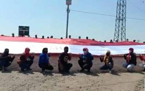 HUT RI Ke-76, Lumpur Lapindo Sidoarjo Membentangkan Bendera Merah Putih Terbesar