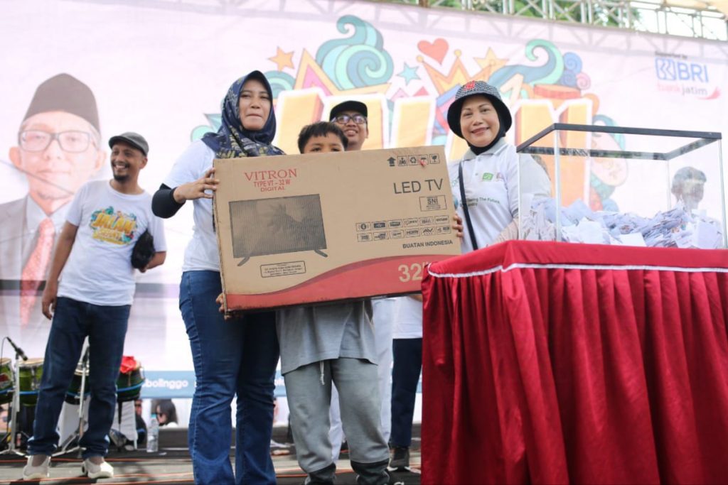 Jalan sehat ditutup dengan berbagai doorprize dan pembagian hadiah menarik mulai dari kipas angin, kulkas, setrika, rice cooker hingga sepeda listrik. (suh)