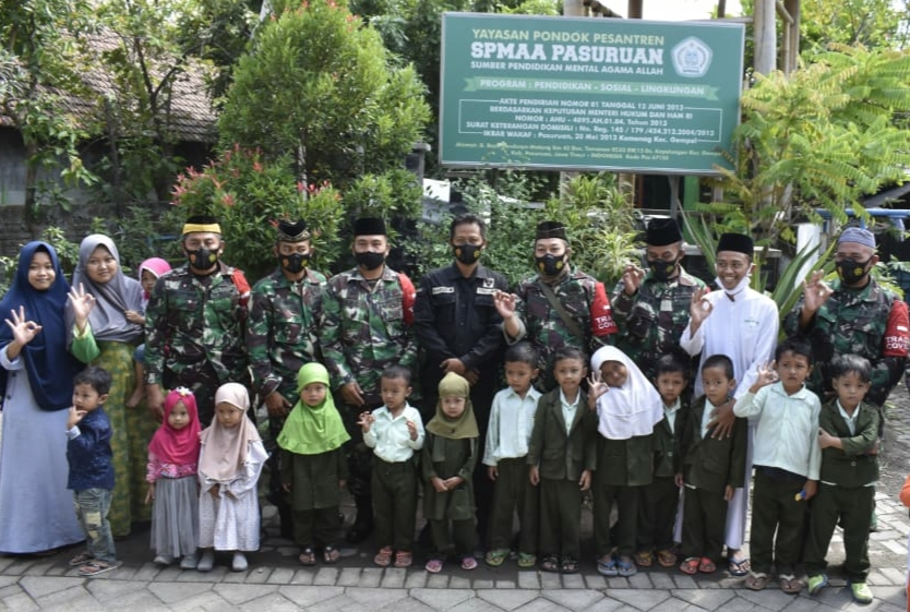 PASURUAN – RI, Serka M. Saiful selaku Babinsa Desa Kepulungan bersama Serda Bagus dan Praka Feri Anggota Media Pendim 0819/Pasuruan melaksanakan Anjangsana guna mempererat tali silaturahmi sekaligus menjalin Komunikasi Sosial kepada Pengasuh Yayasan Ponpes SPMAA (Sumber Pendidikan Mental Agama Allah) dan para Satri di Dusun Tamanan Kecamatan Gempol. Rabu (16/06/2021).