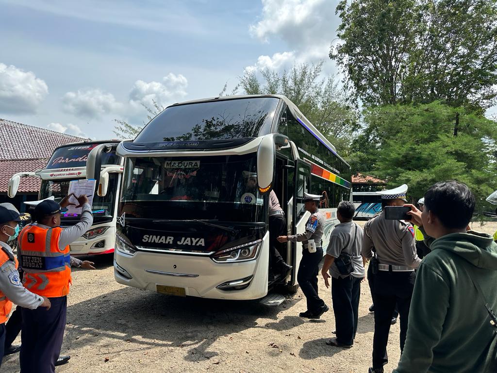 Kasat Lantas Polres Sumenep Akp Alimuddin Nasution, SH.,MH mengatakan setiap armada bus satu persatu oleh petugas dilakukan pengecekan kendaraannya.