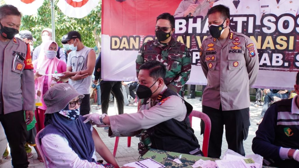 Kapolresta Sidoarjo Kombes Pol. Kusumo Wahyu Bintoro bersama Wakil Bupati Sidoarjo Subandi serta Dandim 0816 Sidoarjo Mohammad Iswan Nusi kompak turun langsung menyapa warga Kepetingan. Selain memantau pelaksanaan vaksinasi Covid-19, pada kesempatan ini Forkopimda Sidoarjo juga menyalurkan bantuan sosial paket sembako kepada warga Dusun Kepetingan.