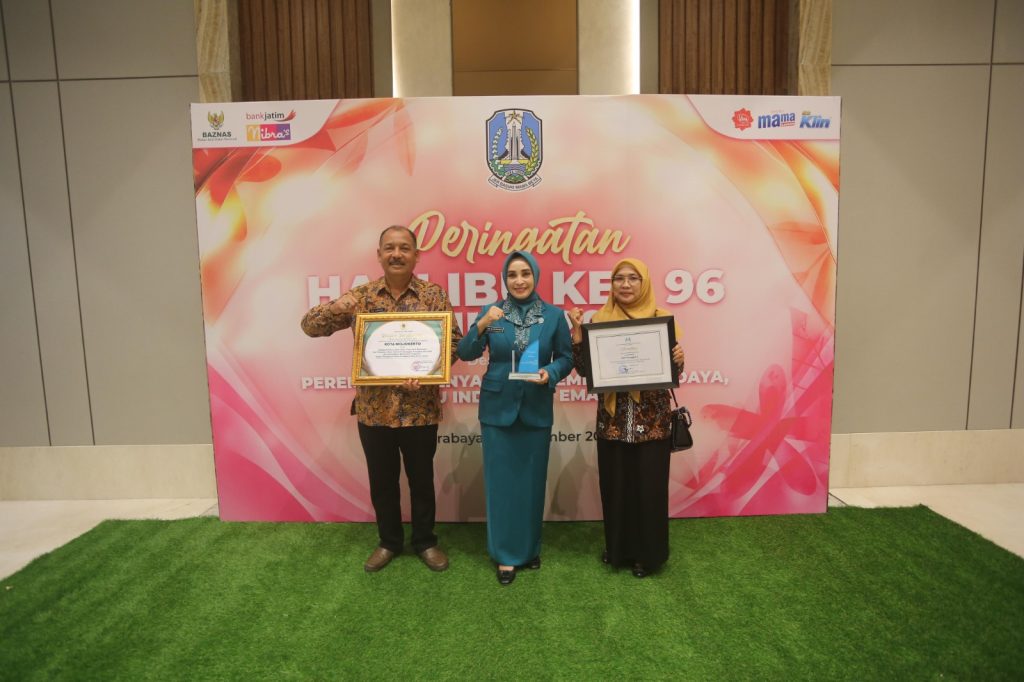 Piagam penghargaan atas pencapaian ini diserahkan oleh Pj Gubernur Jawa Timur, Adhy Karyono, kepada Kepala Dinas Sosial dan Pemberdayaan Perempuan dan Perlindungan Anak (DinsosPPPA) Kota Mojokerto, Choirul Anwar yang hadir mewakili Penjabat (Pj) Wali Kota Mojokerto, Moh. Ali Kuncoro, dalam rangka Peringatan Hari Ibu yang berlangsung di Dyandra Convention Hall, Kota Surabaya, pada Kamis (19/12).
