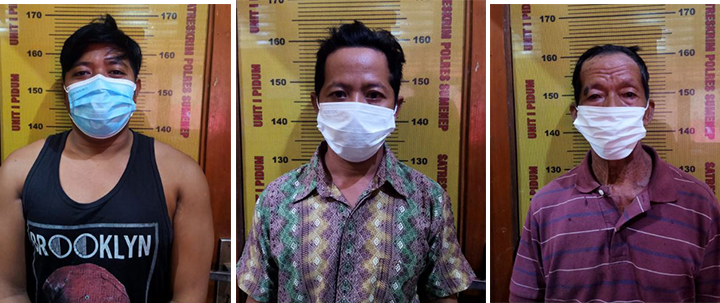 Setelah kejadian tersebut ketiga Pelaku melarikan diri atas nama Halili (30 tahun), Mioddin (60 tahun), dan Haris (40 tahun) ketiganya beralamat di Dusun Wakduwak Desa Beluk Raje Kecamatan Ambunten. Pada pukul 00.30 WIB, Tim Resmob berhasil menangkap Halili di sebuah rumah milik Bapak Salam di Dusun Bilbagung Desa Lebeng Timur Kecamatan Pasongsongan. Pada hari Kamis (02/12/2021) pukul 08.00 WIB Pelaku atas nama Haris dan Mioddin menyerahkan diri ke Polsek Pasongsongan dan diserahkan oleh Kades Beluk Raje Kec Ambunten dan Kades Sodara Kecamatan Pasongsongan. Selanjutnya ketiga Pelaku dan BB(Barang Bukti) dibawa ke Polres Sumenep untuk pemeriksaan lebih lanjut.