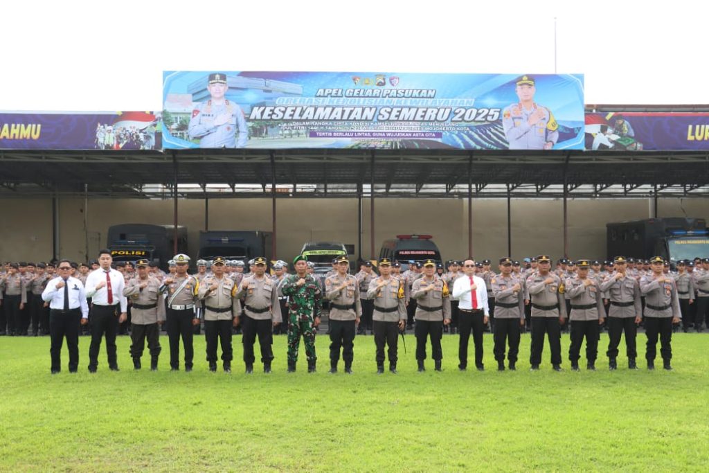 KOTA MOJOKERTO, RI- Kapolres Mojokerto Kota AKBP Daniel S. Marunduri S.I.K., M.H. memimpin Apel Gelar Pasukan Operasi Keselamatan Semeru 2025 pada Senin (10/02/2025) di Lapangan Patih Gajah Mada, Polres Mojokerto Kota.