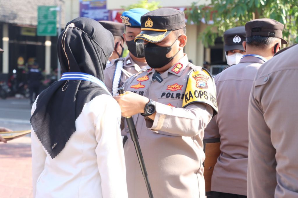 NGANJUK – RI, Kapolres Nganjuk AKBP. Boy Jeckson S., S.H.,S.I.K.,M.H. memberikan piagam penghargaan kepada 6 orang Anggota dan 1 Tenaga Non ASN yang dinilai berprestasi dalam perkerjaannya sehingga bisa membawa nama harum Polres Nanjuk.